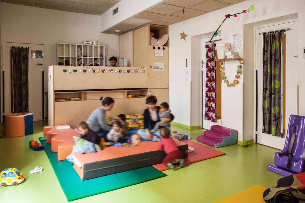 Dès leur arrivée, les enfants et leurs parents partagent un moment précieux avec l’équipe pédagogique. Cette transmission matinale permet d’échanger sur l’état émotionnel et les besoins spécifiques de chaque enfant. Ensuite, place aux activités d’éveil, adaptées à chaque tranche d’âge, pour démarrer la journée en douceur. Vont ensuite s’ajouter les moments de repas, la ou les siestes, les moments d’activité libre ou dirigée. L’objectif : trouver le rythme adapté et prendre le temps. Et pour clore la journée : de nouveau un moment de transmissions entre enfants et l’équipe pédagogique.